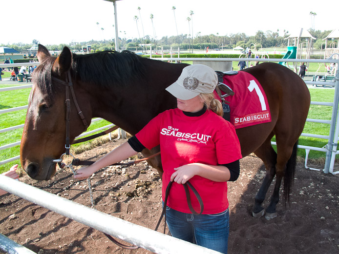 Horse racing at Santa Anita Park. This is the horse that played the role of Seabiscut in the move.