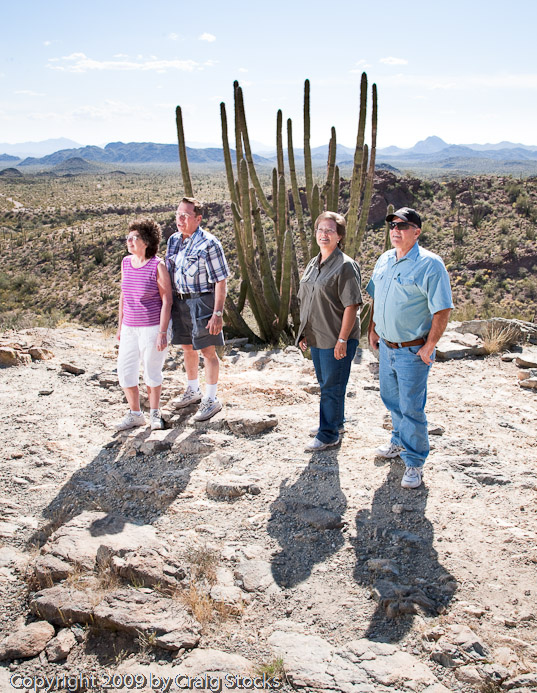 These visitors are taking in the view of the bajada (hillside) behind Birdseye Point.