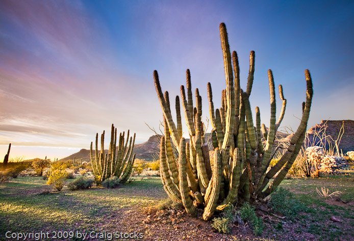 Organ pipe cactus glowing in the evening light.