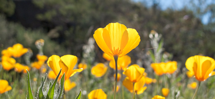 Mexican gold poppies blooming in the spring