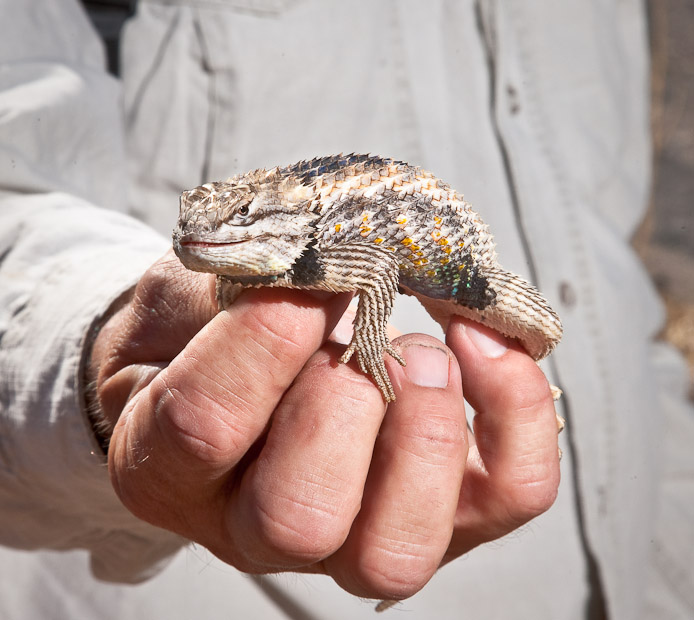 A lizard captured and released as part of ongoing research at Organ Pipe Cactus N.M.