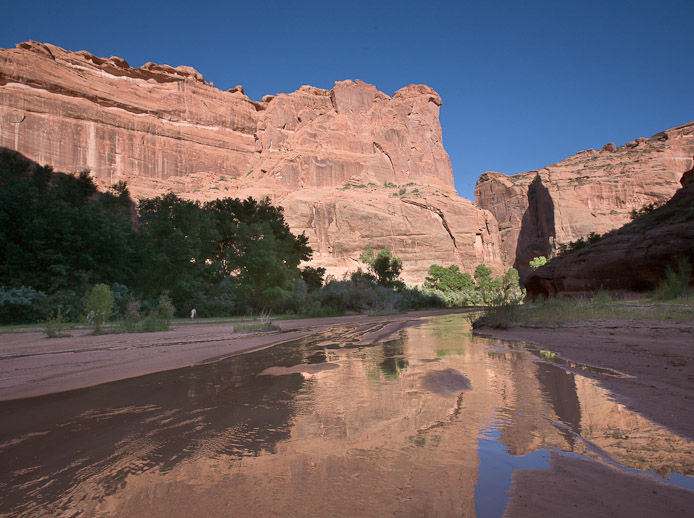 Inside Canyon de Chelly. Note the horses grazing on the left side of the photo.